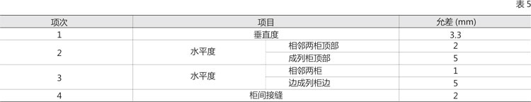 ◎ 裝置單獨(dú)或成列安裝時(shí),其垂直度以及柜面不平度和柜間隙縫的偏差符合下表規(guī)定。